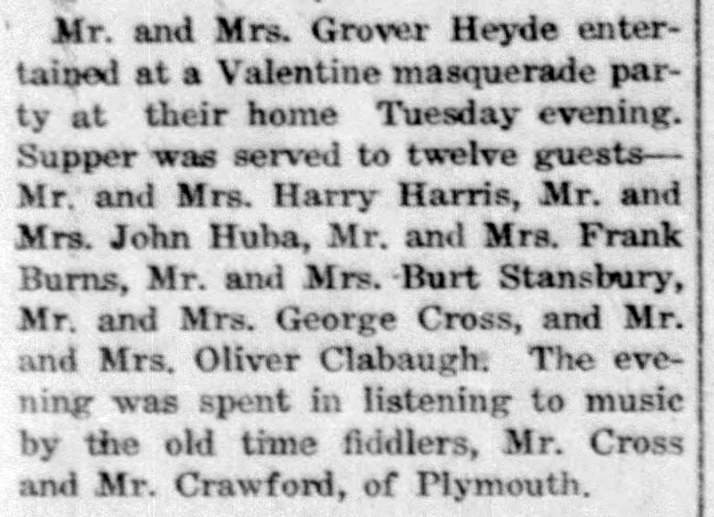 1927 – Heyde valentine masquerade – Enquirer_Thu__Feb_17__1927_