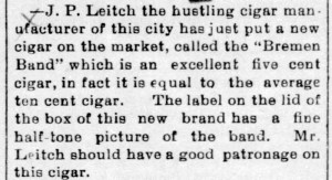 Leitch Bremen Band cigar – Enquirer_Fri__Mar_31__1899_