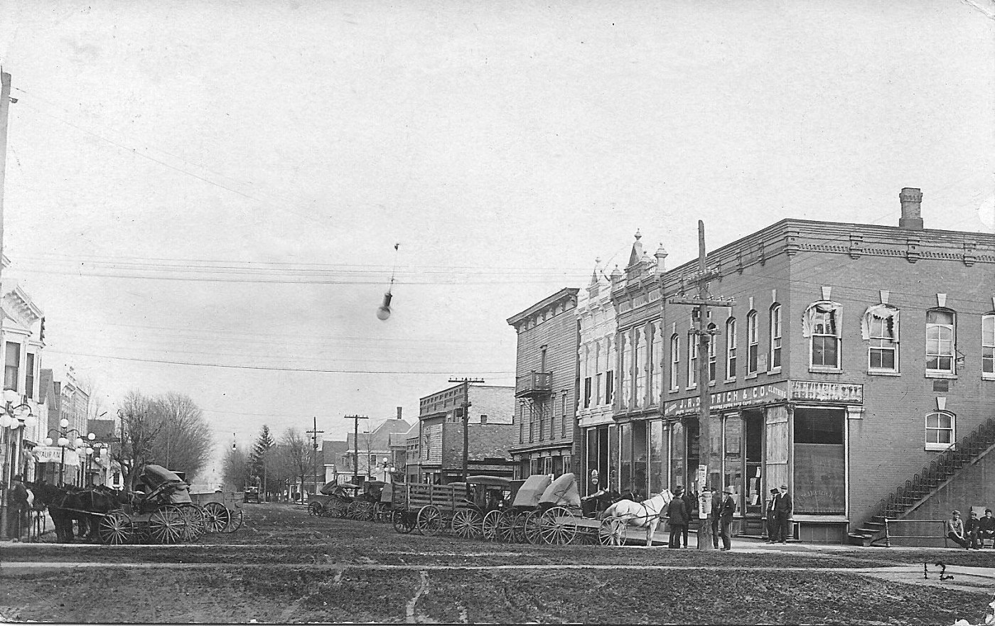 Dietrich’s store was constructed in 1875 by John R Dietrich, Jr, after his father, John Sr, originally of Switzerland, had made a good business in furniture, undertaking, and grocery. Note: the building next to Hoople’s that looks just like Hoople’s was the original location of John, Sr’s business and was open in the interior to the newer building. It was eventually stripped of its ornamentation and made to blend into the later building.