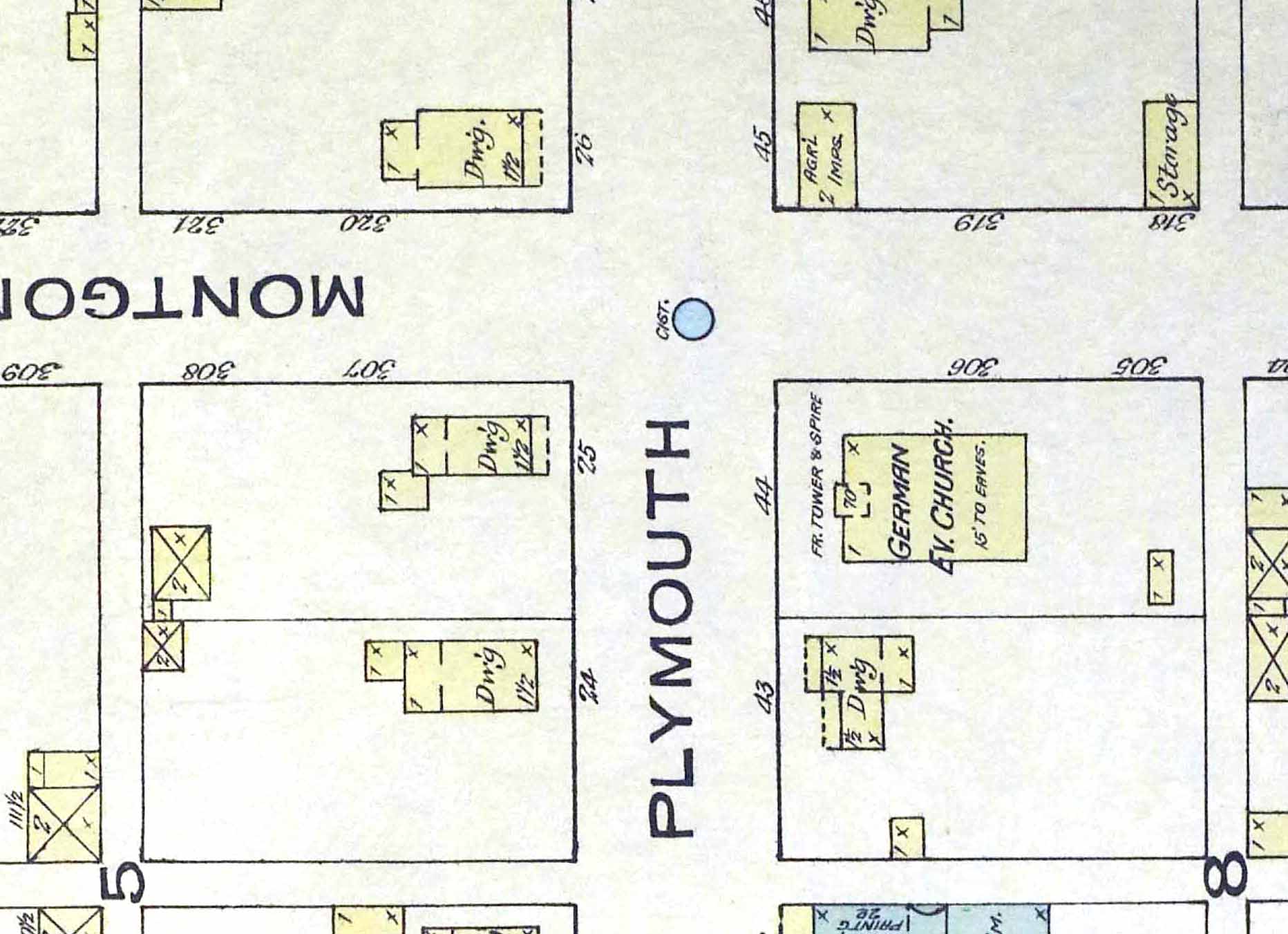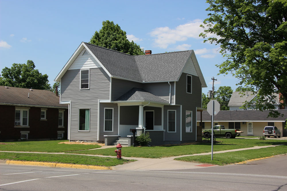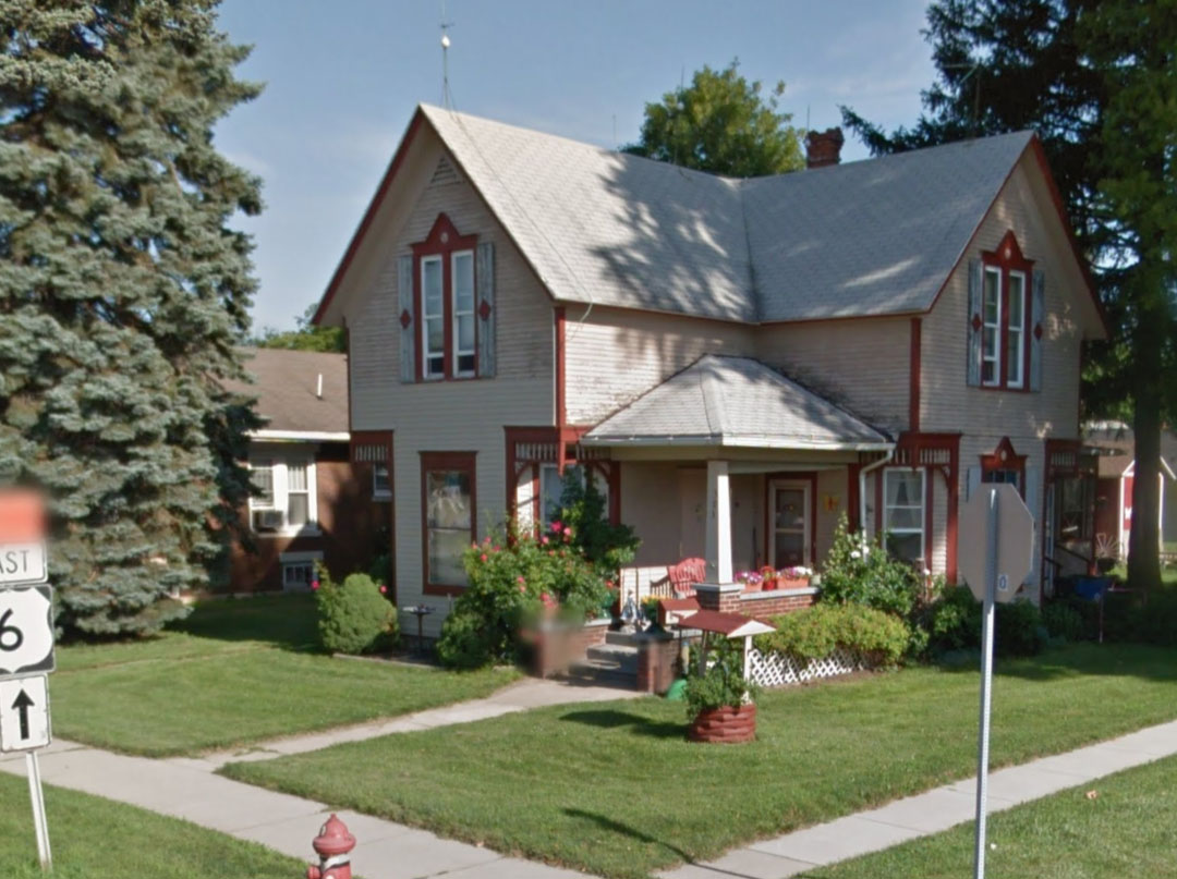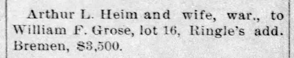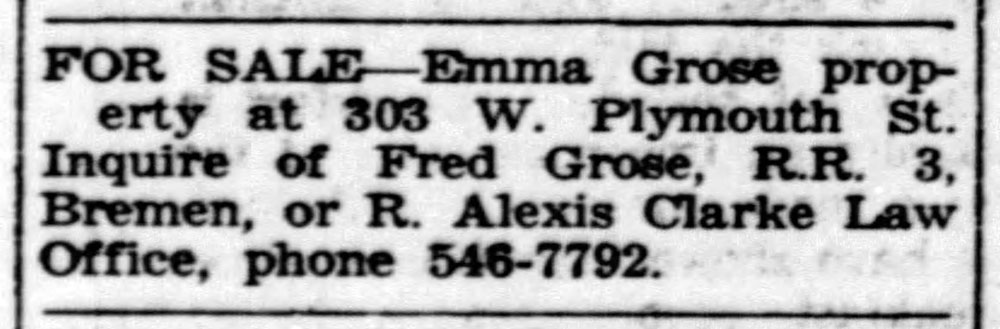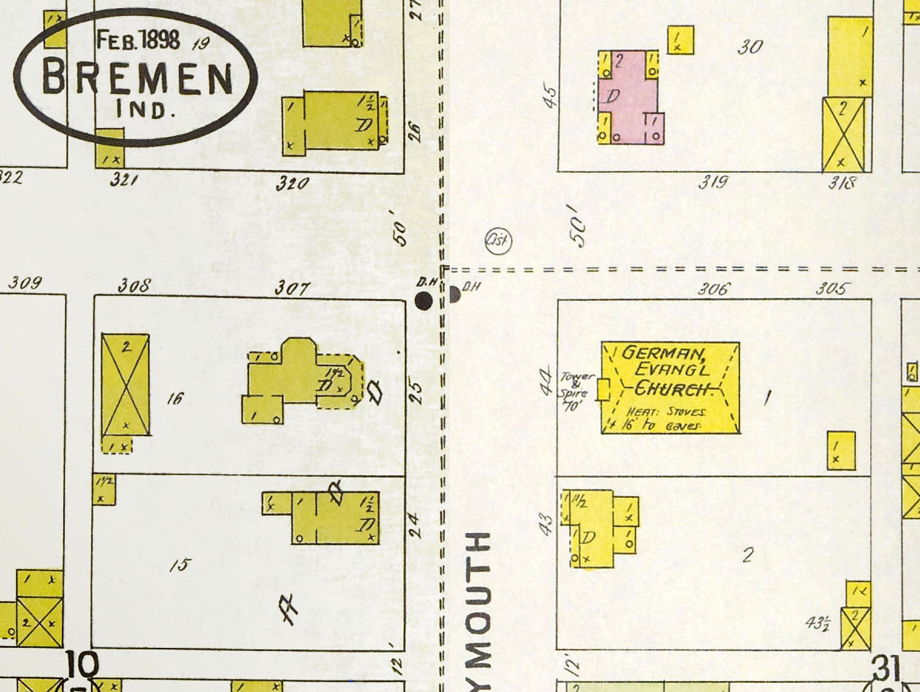 Among the artifacts in the library’s collection is this 1890s photo of one of the Bremen fire brigades in front of a house identifiable as 303 W Plymouth St. The house has been renovated and remodeled recently, but an image from Google Street View shows that it even kept the old window detail for more than a century.