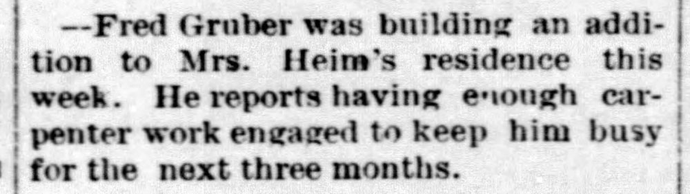 The house is occupied by the Vanderkeeres now, but at one time it was owned by Dr J W Moody (rented by photographer J E Portmess), followed by John and Lena Heim, then William F Grose and family. His daughter Emma lived there from 1913 to her death in 1963. We even know the date of the addition to the east side: 1887.