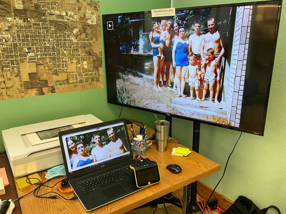 A few years ago, the Bremen Public Library gave us their collection of newspaper microfilm, but the reader was in poor condition, so we donated it to the Marshall County Historical Museum, who had the need for such a reader and the funds to refurbish it. The Slide N Scan now fills that niche for us in a practical way, allowing us to view slides, negatives (inverted to positive), and microfilm and to capture high-quality images.