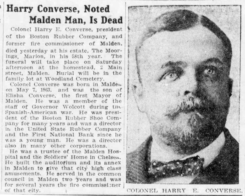 In addition to his work with the fire commission, Harry was the head of the Boston Rubber Company and a yachtsman. After he died in 1920, his widow, Mary [Parker] Converse, also an avid sailor, became the only woman of her time to get officially licensed as a sea captain, thus allowing her to sail her own yacht.